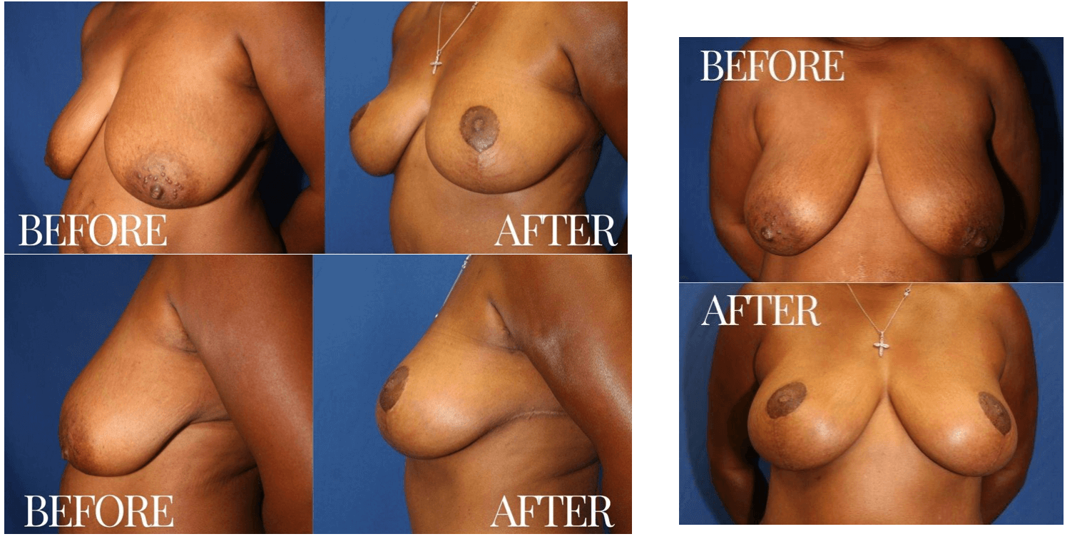 Breast Reduction: Reduced volume and uplift for breasts that may sag or enlarge due to hormonal changes associated with menopause.